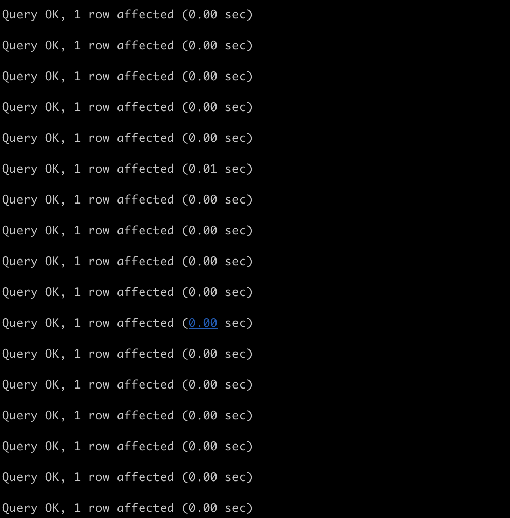여기서 1 row in set (0.00 sec) 부분은 MySQL 의 커맨드라인 즉, 터미널에 나타나는 행의 갯수이고, 실제 DBMS 로부터 돌려받은 데이터의 행 갯수가 아니다. 헷갈리지 말자!